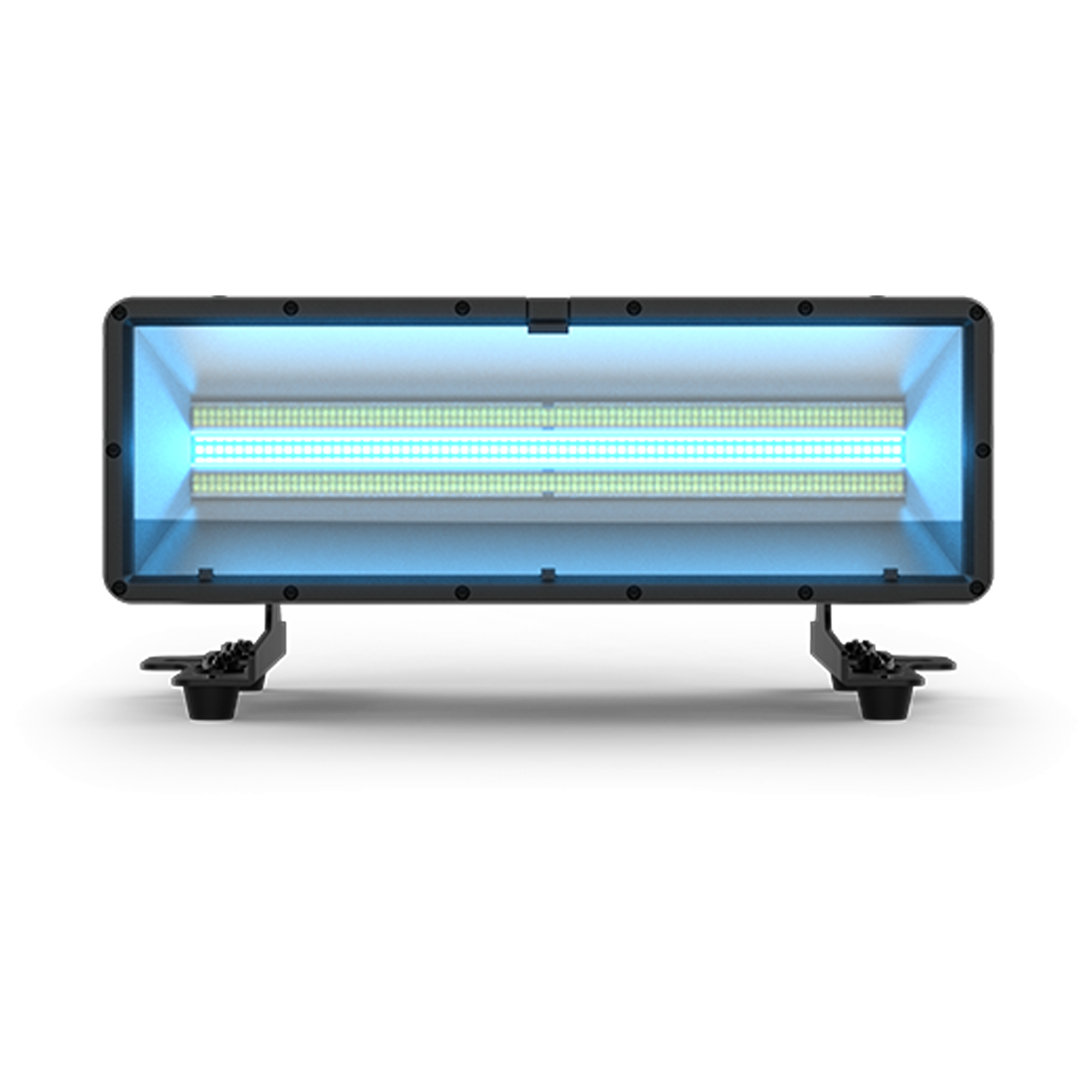 中央の2本のチューブから眩しく強力なストロボ効果を発揮します。更に、ピクセルおよびカラーブロックによる演出も可能です。