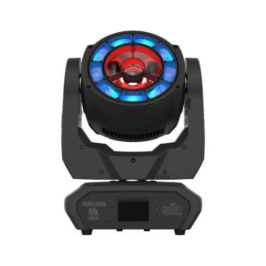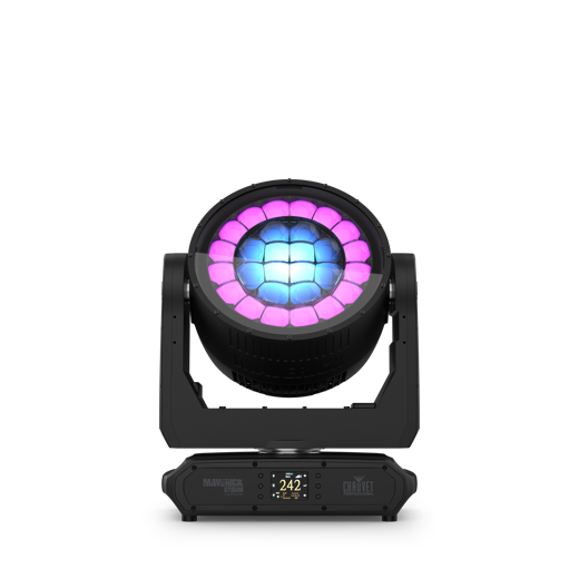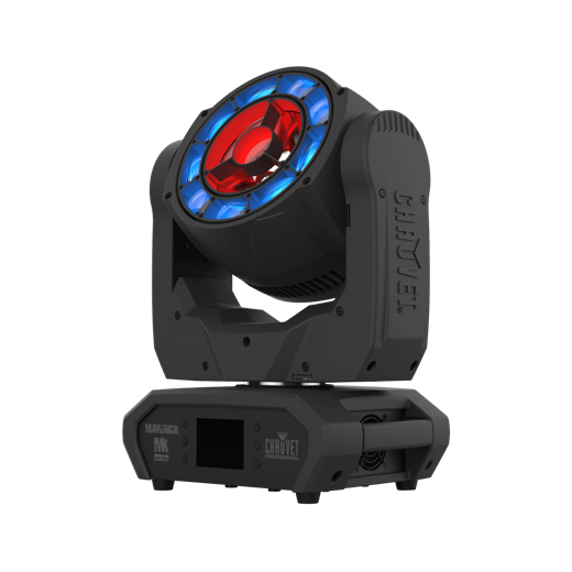 Maverick Storm 3 BeamWashは、28個の45W RGBW LEDと外周リングを搭載したIP65規格のビームウォッシュライトです。26,000ルーメンの光源出力で非常に明るく、インパクトのある演出を実現し、屋外イベント、フェス、テーマパークなどに最適です。
