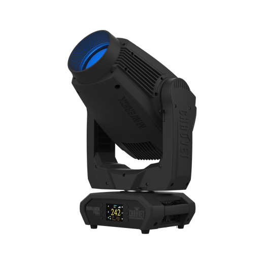 Maverick Force 1 Spotは、軽量でコンパクトなボディーから20,000ルーメンを超える光出力が可能な高品位のLEDムービングスポットライトです。470W LEDを搭載し、CMY + CTOカラーミキシング、CTBおよびCRIオプション付きのカラーホイール、フルワイド時にもフラットな焦点を維持する6.3°~54.4°ズームを備えています。